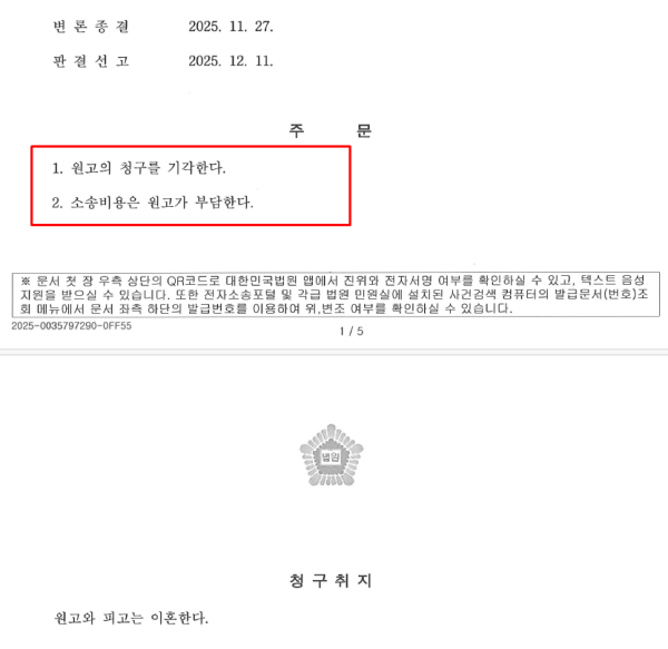 이혼소송 기각 성공