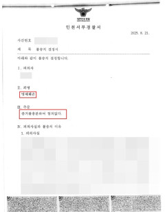 현행범체포 구속영장 청구 기각 성공