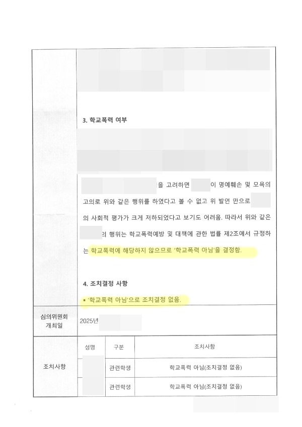 '학교폭력아님' 결정을 받을 수 있었습니다.