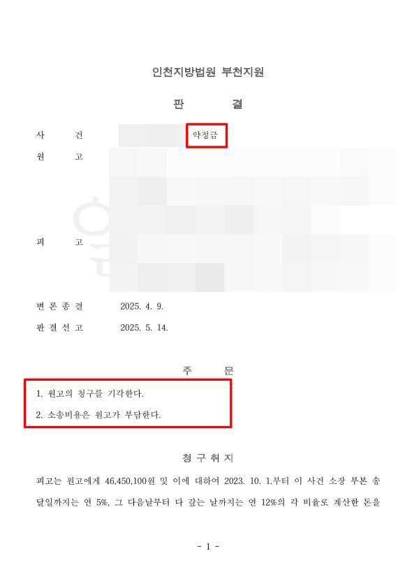 약정금 4,670만원 청구 전부 기각이라는 판결이 선고되었습니다.