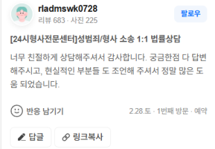 소변호사님 시간맞춰서 예약하고 방문했는데 기다린 보람있네요 고맙습니다