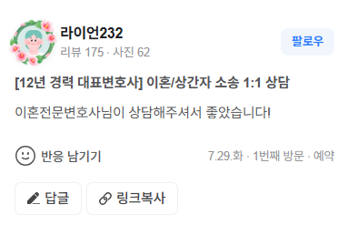 이혼전문변호사님이 상담해주셔서 좋았습니다!