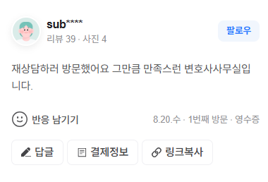 재상담하러 방문했어요 그만큼 만족스런 변호사사무실입니다.