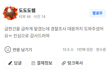 급한건을 급하게 맡겼는데 경찰조사 대응까지 도와주셨어요ㅠ 진심으로 감사드려요