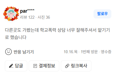 다른곳도 가봤는데 학교폭력 상담 너무 잘해주셔서 맡기기로 했습니다