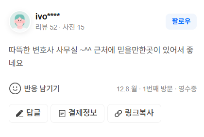 따뜩한 변호사 사무실 ~^^ 근처에 믿을만한곳이 있어서 좋네요