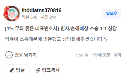 양육비 소송때문에 방문했고 상담잘해주셨습니다 :)