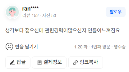 생각보다 젊으신데 관련경력이많으신지 연륜이느껴짐요