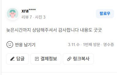 늦은시간까지 상담해주셔서 감사합니다 내용도 굿굿