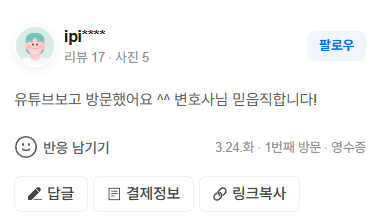 유튜브보고 방문했어요 ^^ 변호사님 믿읍직합니다!
