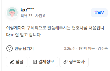 이렇게까지 구체적으로 말씀해주시는 변호사님 처음입니다ㅠ 잘 받고 갑니다