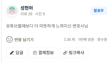 유튜브볼때보다 더 따뜻하게 느껴지신 변호사님