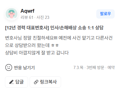 변호사님 정말 친절하세요!!! 예전에 사건 맡기고 다른사건으로 상담받으러 왔는데 ㅎㅎ