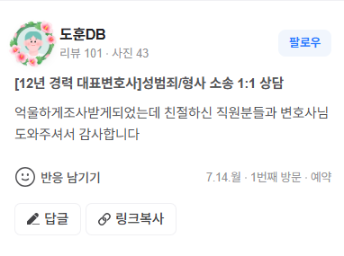 억울하게조사받게되었는데 친절하신 직원분들과 변호사님 도와주셔서 감사합니다