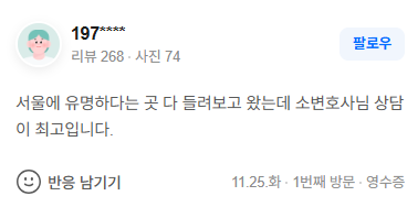 서울에 유명하다는 곳 다 들려보고 왔는데 소변호사님 상담이 최고입니다.