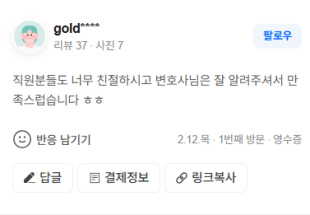 직원분들도 너무 친절하시고 변호사님은 잘 알려주셔서 만족스럽습니다 ㅎㅎ