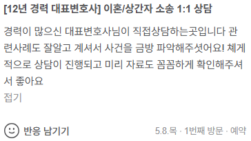 네이버리뷰 네이버 리뷰 2025-05-28 경력이 많으신 대표변호사님이 직접 상담하는곳입니다 관련사례도 잘 알고 계셔서 사건을 금방 파악해주셨어요! 체계적으로 상담이 진행되고 미리 자료도 꼼꼼하게 확인해주셔서 좋아요 목록