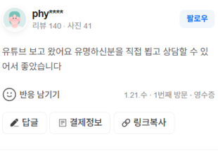 유튜브 보고 왔어요 유명하신분을 직접 뵙고 상담할 수 있어서 좋았습니다