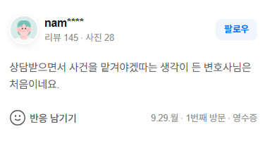 상담받으면서 사건을 맡겨야겠다는 생각이 든 변호사님은 처음이네요