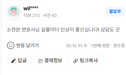 소현완 변호사님 실물이더 인상이 좋으십니다! 상담도 굿