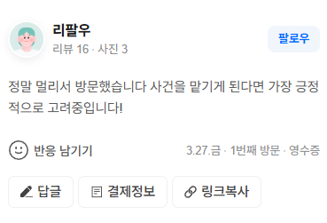 정말 멀리서 방문했습니다 사건을 맡기게 된다면 가장 긍정적으로 고려중입니다!