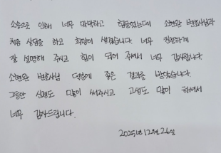 이혼사건 승소 후 의뢰인분께서 작성해주신 자필편지입니다.